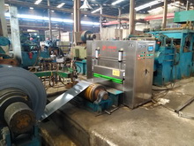 2007年公司通過引進(jìn)國外先進(jìn)的靜電涂裝技術(shù),結(jié)合國內(nèi)各類中小型金屬板(帶、絲)冷軋機(jī)組的實(shí)際應(yīng)用情況,成功的研發(fā)出XCTZ-3型系列金屬板(帶)冷軋靜電涂油機(jī)、XCTZ-H101焊絲靜電涂油機(jī)、XCTZ-D刀帶靜電涂油機(jī),其高壓力微流量雙流體霧化靜電涂油技術(shù)已在國內(nèi)處于領(lǐng)先地位.每平米0.3克(單面)的涂油量已在實(shí)際應(yīng)用中得到滿意的效果.